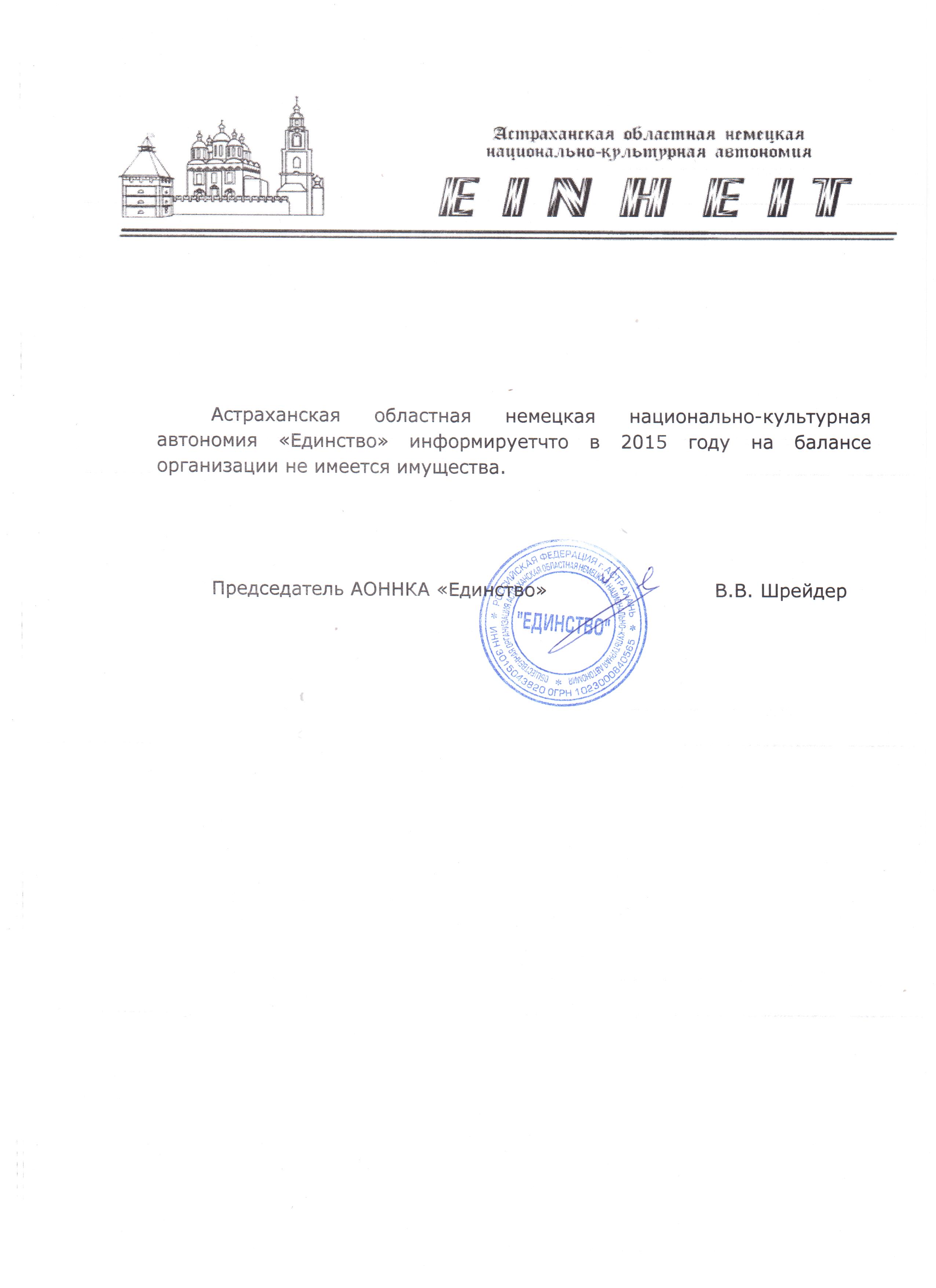Отчет АОННКА "Единство" об использовании имущества в 2015 году