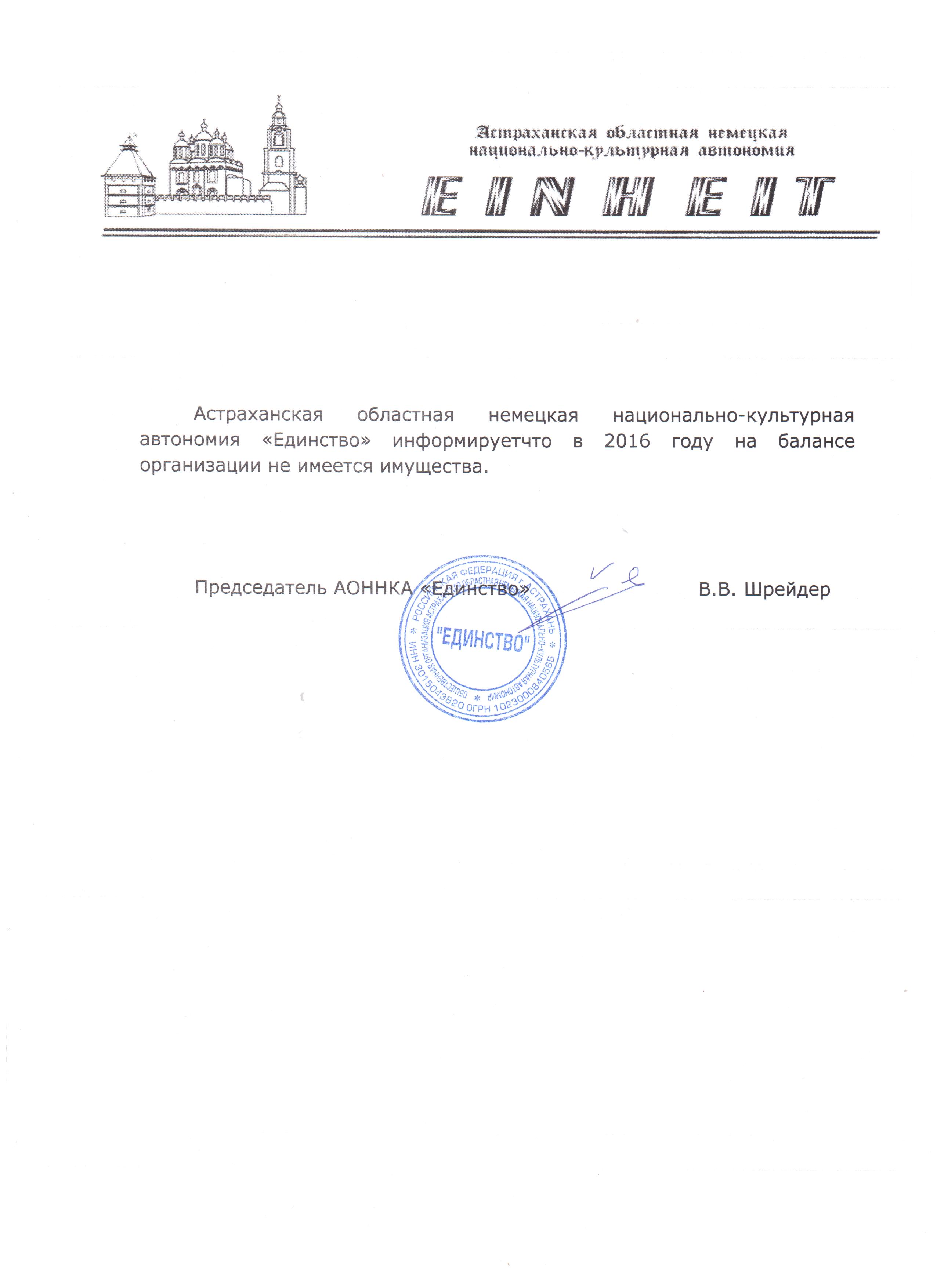 Отчет АОННКА "Единство" об использовании имущества в 2016 году